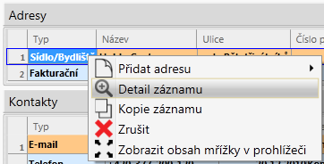 se otevře detail daného záznamu. Zobrazuje více informací