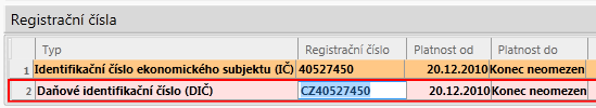 První blok je umístěn pod nástrojovou lištou a slouží pro identifikaci záznamů. Tento blok nelze minimalizovat.