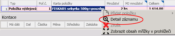 o zvoleném dokladu, položce, aj. a umožňuje případnou úpravu údajů v mřížkách.