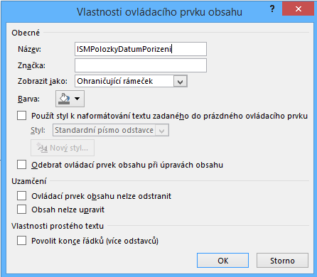 Ovládací prvky mohou být umístěné v těle dokumentu, záhlaví i zápatí podle konkrétních požadavků.