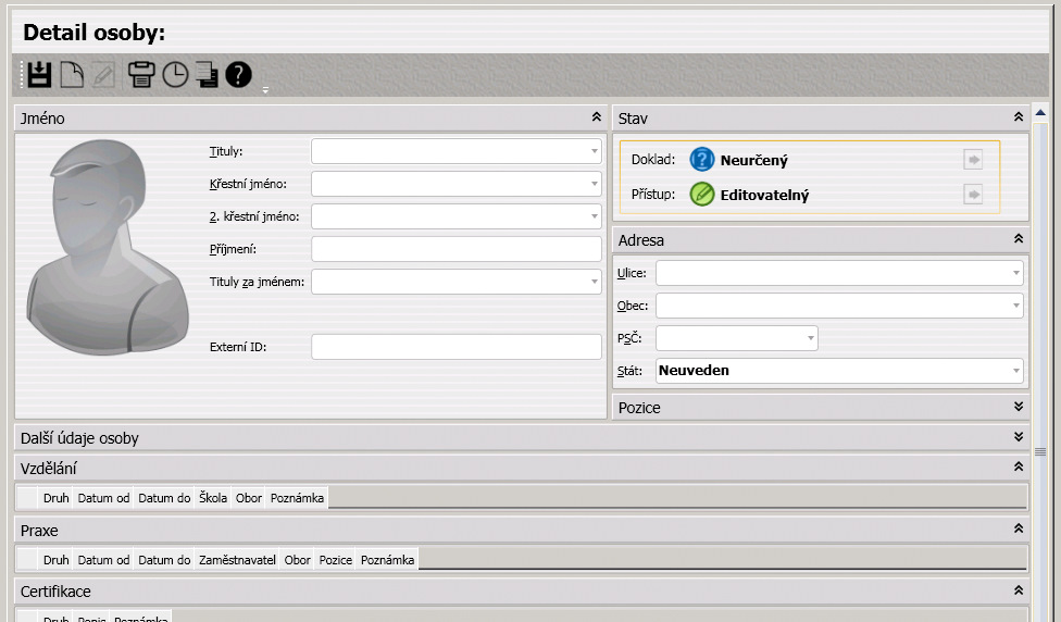 Vyplníme jméno, adresu a další údaje o přidávané osobě.